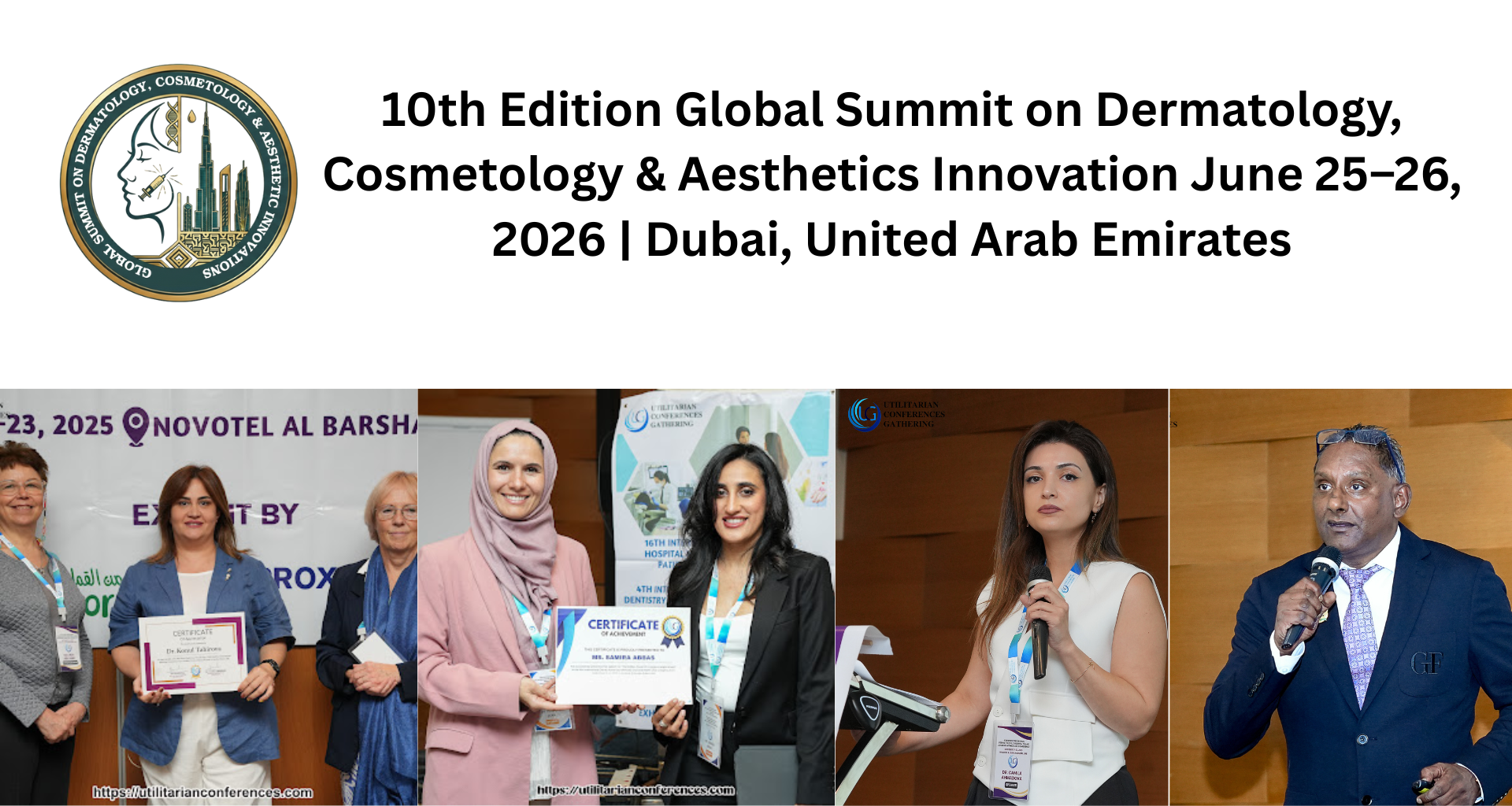 We are pleased to announce the 10th Edition Global Summit on Dermatology, Cosmetology & Aesthetics, an internationally organised scientific conference scheduled for June 25–26, 2026, in Dubai, United Arab Emirates, organised by Utilitarian Conferences Gathering (UCG).