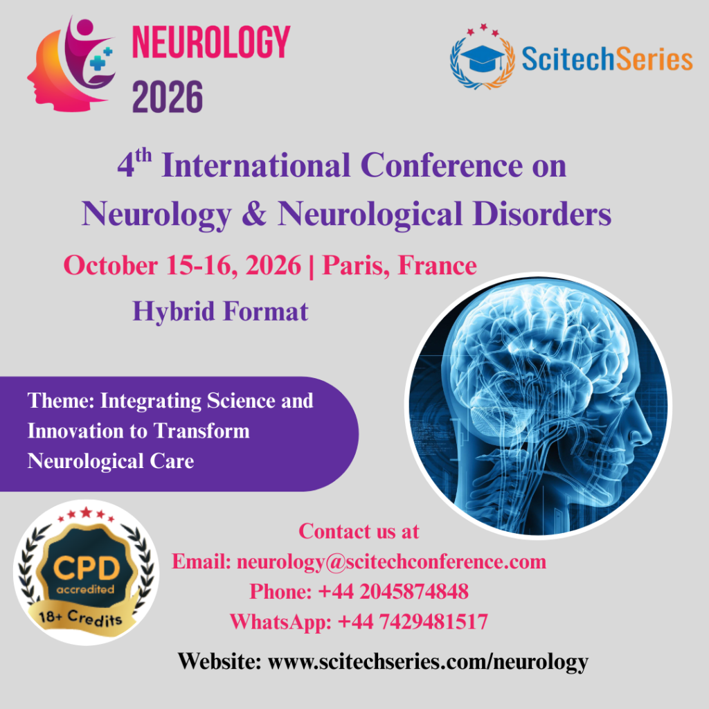 ScitechSeries cordially invites you to participate in the esteemed "4th International Conference on Neurology & Neurological Disorders," a Hybrid Event set to unfold in Paris, France from October 15-16, 2026. This innovative Hybrid format allows for your engagement, whether in person in the vibrant city of Paris or virtually from the convenience of your home or workplace.