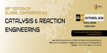 The 22nd Edition of Global Conference on Catalysis & Reaction Engineering (CAT 2026) is scheduled to be held from October 05–07, 2026, in Tokyo, Japan.