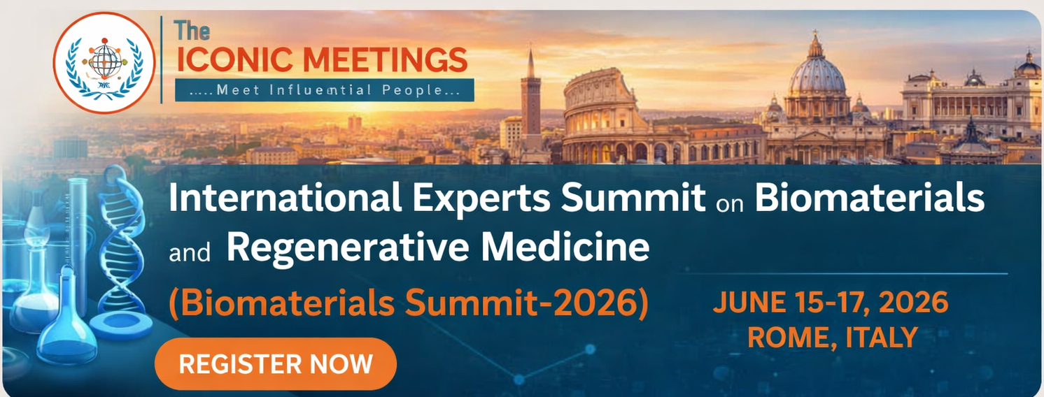 Welcome to the International Experts Summit on Biomaterials and Regenerative Medicine (Biomaterials Summit-2026), which will be held from June 15-17, 2026, in the historic city of Rome, Italy. This prestigious global event brings together leading researchers, scientists, academicians, industry professionals, and healthcare experts to discuss the latest innovations, trends, and challenges in the field of biomaterials and regenerative medicine. The Biomaterials Summit-2026 aims to provide a dynamic platform for knowledge exchange and collaboration, fostering interdisciplinary discussions that drive scientific advancements and technological breakthroughs. The conference will feature keynote presentations, plenary lectures, oral and poster sessions, workshops, and interactive networking opportunities designed to inspire future innovations in biomedical engineering and regenerative therapies. Participants will gain insights into emerging research areas such as tissue engineering, biofabrication, nanobiomaterials, 3D bioprinting, regenerative cell therapies, and clinical translation of biomaterials. The event also offers an excellent opportunity to connect with global experts, explore collaborative projects, and discover cutting-edge solutions shaping the future of regenerative medicine.